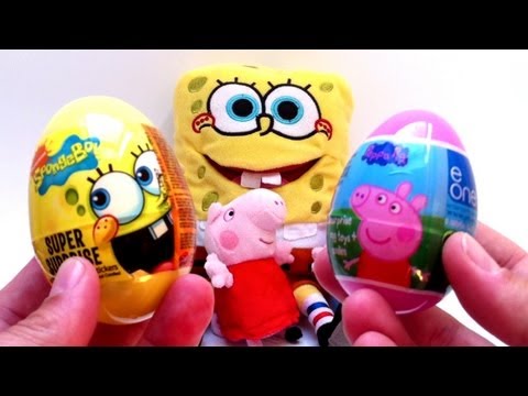 2 Peppa pig and Spongebob Kinder surprise eggs and toys Unboxingsurpriseegg